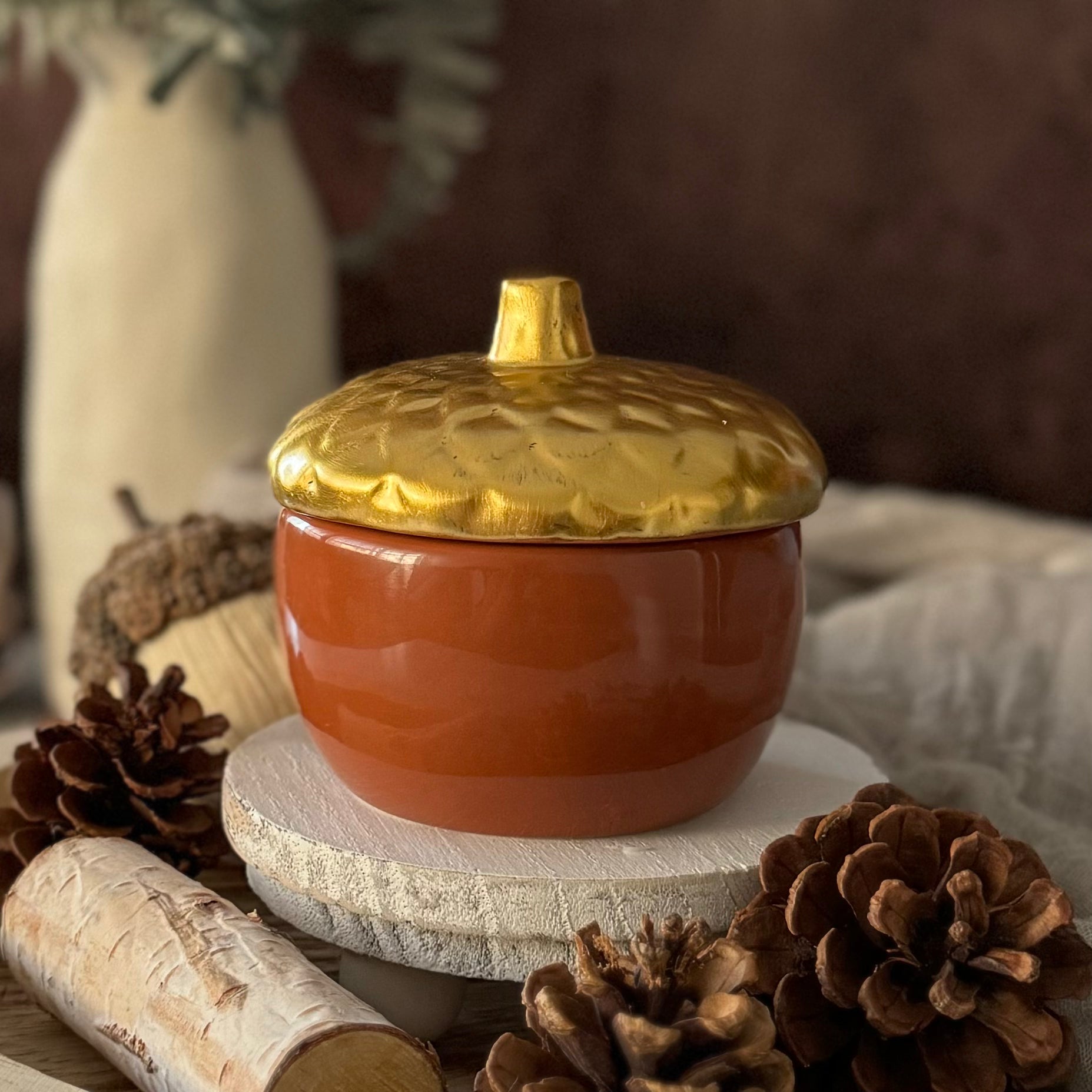 This Acorn-shaped candle is a perfect reflection of our dedication to blending culture and tradition with the beauty of the fall season. This candle not only adds a festive touch to your décor but also envelops your space in the rich, signature scents that define us. It's more than just a candle—it's a celebration of our culture.