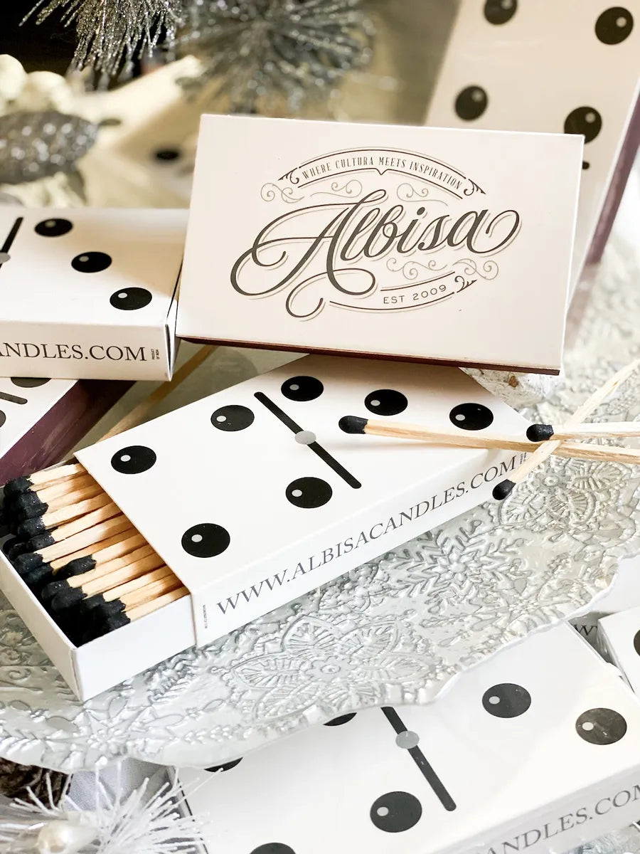 Our Domino-inspired Matchbox is the perfect addition to any home. This matchbox will make a beautiful conversation piece. Whether you use them to light your candles and scent the perfect mood or sit back relax and enjoy a nice Cuban. Our 4-inch long wooden matches will make striking that flame a breeze.
