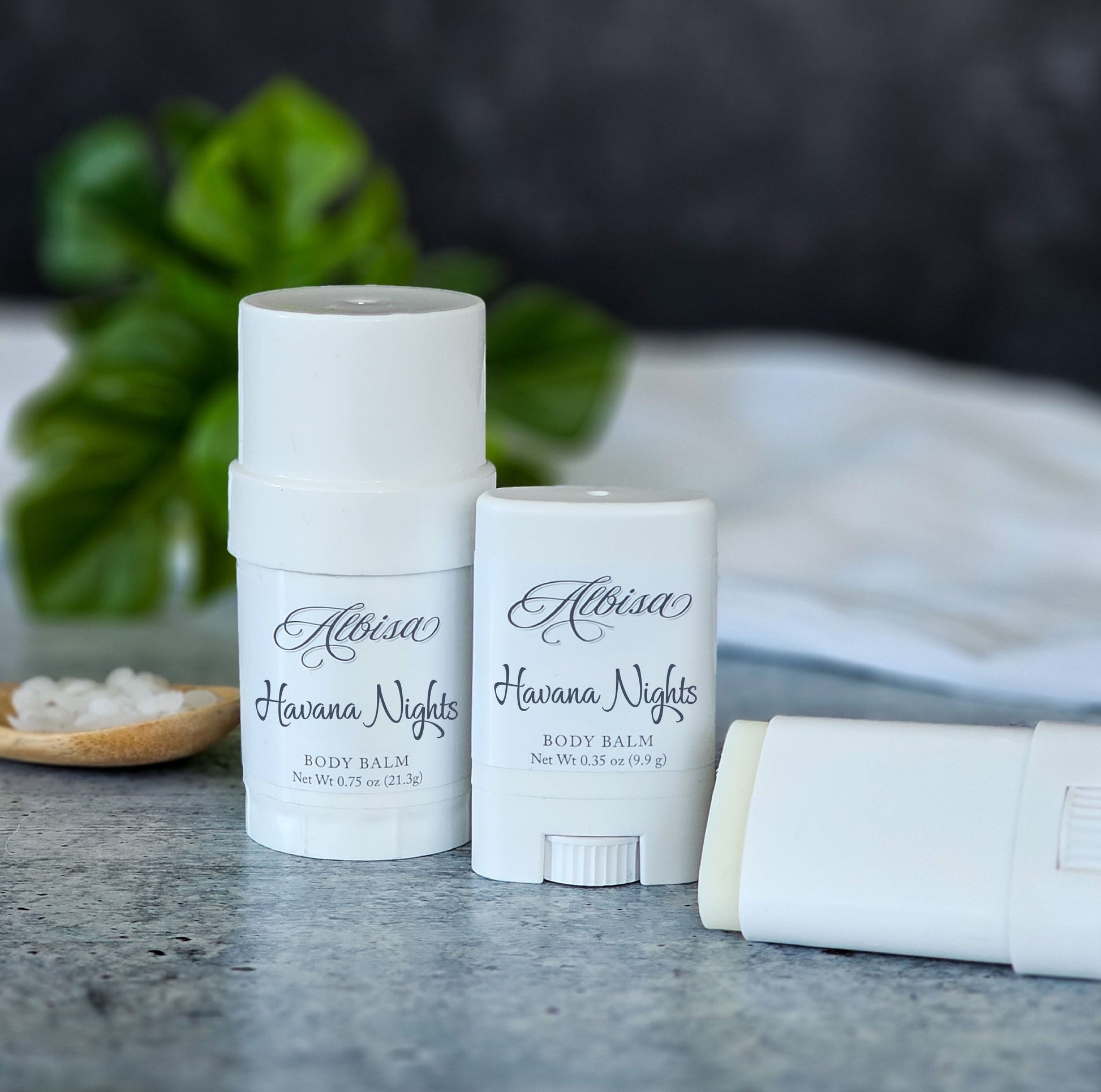 Pamper your skin with our Havana Nights scented nourishing solid body balms. We make them with luxurious skin-loving butter and oils that melt with the warmth of your hands and soak into the skin leaving you soft and hydrated. Our formula is waterless so a little goes a long way. We package them in convenient twist-up tubes, which makes them perfect for travel. Simply toss it in your purse, gym bag, or suitcase and you are ready to go.