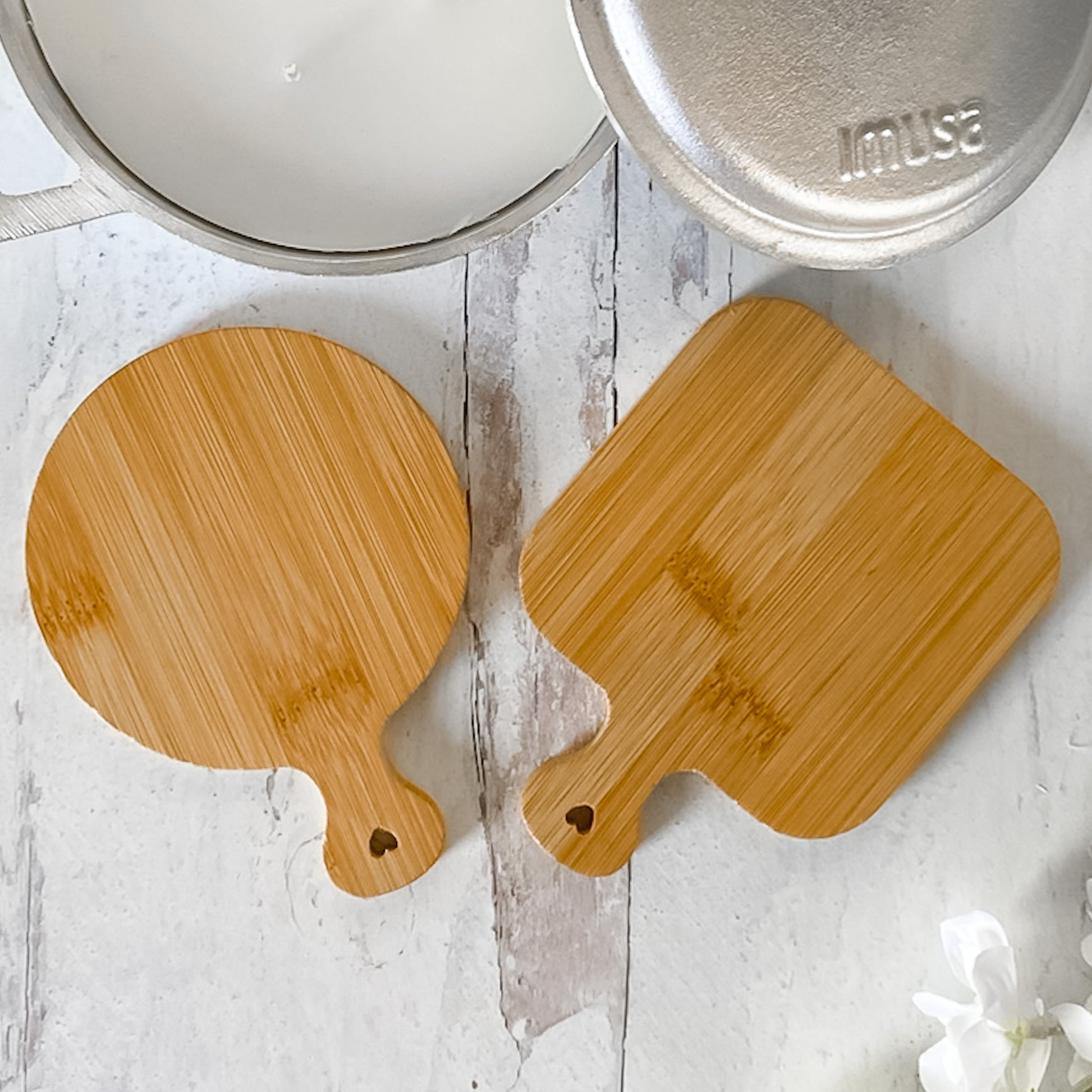 These are available in 2 different shapes, round or square, and are made of bamboo.