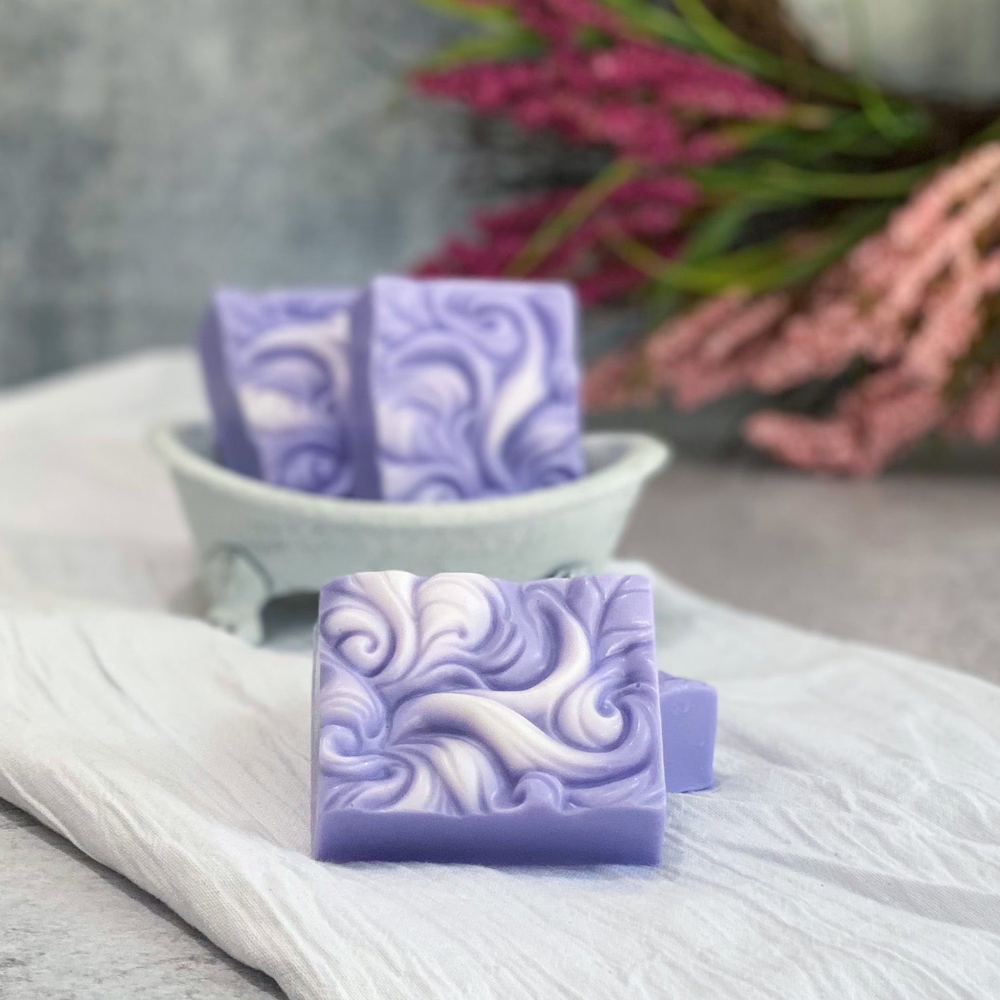 Due to the handmade nature of our soap, color shades and swirl styles may vary. No two soaps will be alike.